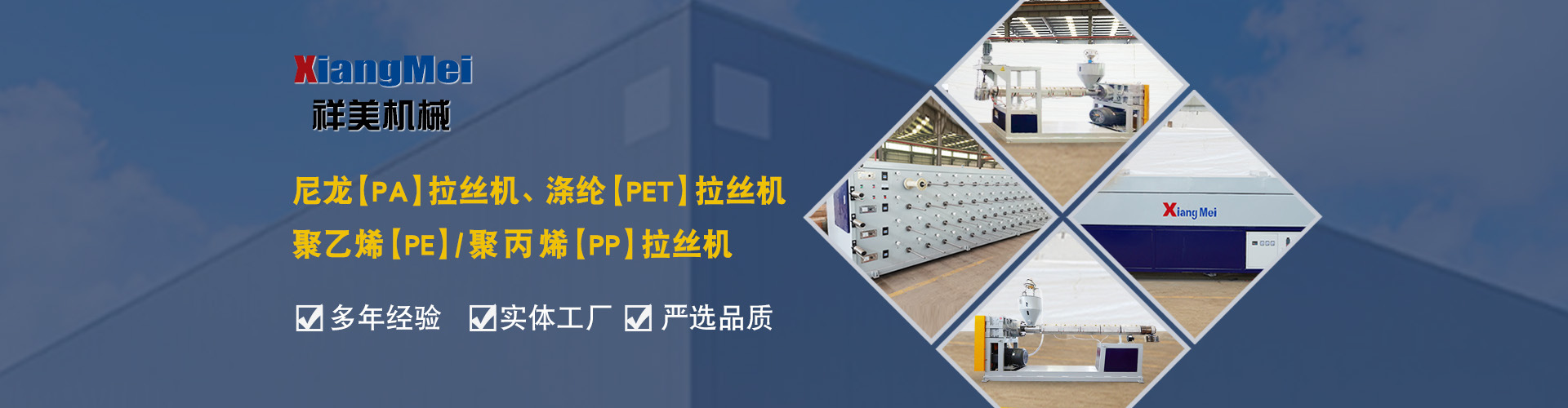 我公司是一家具有30多年專業(yè)生產(chǎn)塑料拉絲機(jī)的企業(yè),作為國內(nèi)最早生產(chǎn)圓絲塑料拉絲設(shè)備的企業(yè),成為國內(nèi)同行競相爭仿的標(biāo)桿,公司產(chǎn)品主要可以生產(chǎn)聚乙烯(PE)、尼龍(PA)、聚丙烯(PP)、滌綸(PET)等作原料拉絲機(jī)設(shè)備及其配套設(shè)備、鉛芯機(jī)設(shè)備及其配套設(shè)備,拉絲機(jī)設(shè)備主要生產(chǎn)的產(chǎn)品有單絲、復(fù)絲、扁絲、刷絲、草坪絲、拉鏈絲、割草線等各類線絲,公司產(chǎn)品在國內(nèi)同行業(yè)中性價(jià)比高、有良好的口碑,曾獲“國家高新技術(shù)、新產(chǎn)品博覽會(huì)金獎(jiǎng)”被輕工部定位替代進(jìn)口產(chǎn)品、國家級(jí)新產(chǎn)品,并多次獲得省、市科技進(jìn)步獎(jiǎng),產(chǎn)品遍布全國大部分地區(qū),并遠(yuǎn)銷日本、意大利、俄羅斯、韓國、印度、澳大利亞、印度尼西亞、墨西哥、菲律賓、泰國、朝鮮、巴基斯坦、烏茲別克斯坦、越南、馬來西亞、老撾、越南、坦桑尼亞等國家和地區(qū)。 公司實(shí)行現(xiàn)代化企業(yè)管理,始終秉承以科技為先導(dǎo),制造為基礎(chǔ),管理為核心的企業(yè)面貌,運(yùn)用先進(jìn)的生產(chǎn)設(shè)備,創(chuàng)新的思維理念,確保產(chǎn)品多樣化、系列化,高品質(zhì),把誠信、責(zé)任、創(chuàng)新作為祥美人不斷的追求的目標(biāo),為新老客戶打造高品質(zhì)的拉絲設(shè)備。 公司位于黃海之濱、亞歐大陸橋東橋頭堡的海濱城市——連云港,這有海陸空便捷的交通網(wǎng)絡(luò)、風(fēng)景秀麗的山海風(fēng)光,總經(jīng)理江中堯先生攜公司全體員工竭誠歡迎各界人士、中外新老客戶來連洽談業(yè)務(wù)。